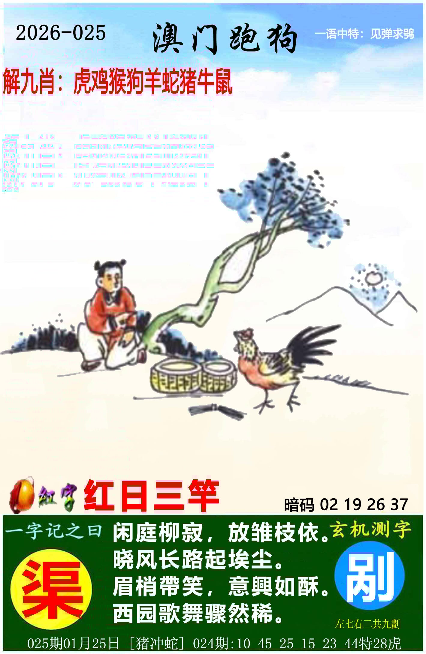 108期澳门跑狗一字記之曰:【倦】